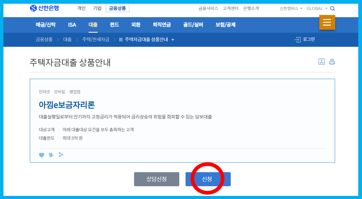 신한은행 아낌 e보금자리론 상세 보기