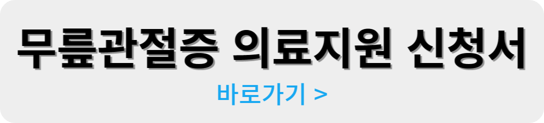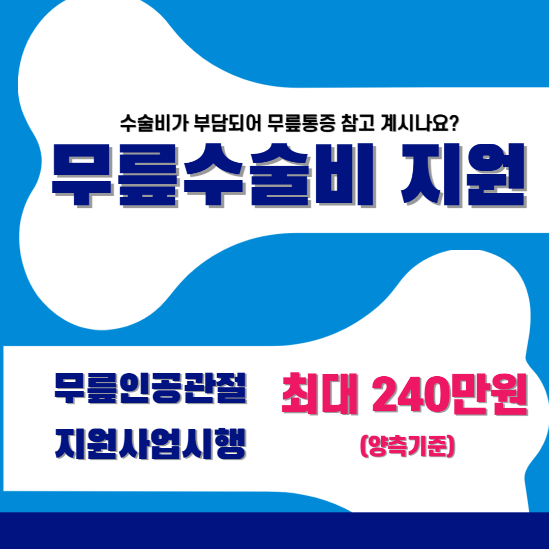 수술비가 부담되어 무릎통증을 참고 계셨다면 국가에서 무릎인공관절 수술비용을 지원하니 적극 활용하시기 바랍니다. 무릎수술을 생가하고 계신 분이 계시다면 1분만 집중해서 최대 240만 원 (양측 기준) 혜택 가져가시기 바랍니다. 그럴 시간조차도 없으신 분들이라면 아래에 링크 남겨 놓을 테니 바로 대상자 확인 하시기 바랍니다.