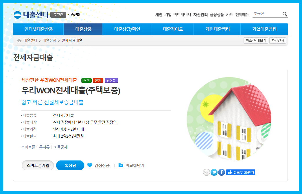 우리은행 우리WON전세대출 고정금리 상세 보기