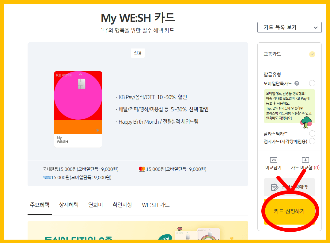 푸드업종 할인 마이위시(My WE:SH) 카드 상세내용